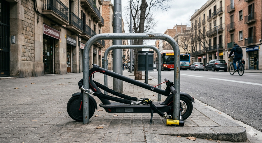 El robo es otro factor real. Un patinete de buena calidad cuesta entre 400 y 900 euros, y aunque los buenos candados ayudan, dejarlo en la calle durante ocho horas no está exento de riesgo. Si no tienes dónde guardarlo en el destino, el problema se complica.